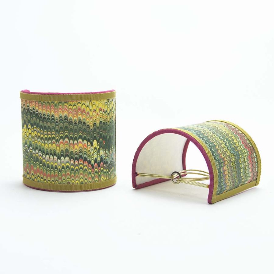 Marble paper half shades in green, yellow, blue & more trimmed with two colors of grosgrain. Measuring 4″ x 4″, sold in pairs. If you are needing a single shade or a set with different color grosgrain please get in touch!!!.